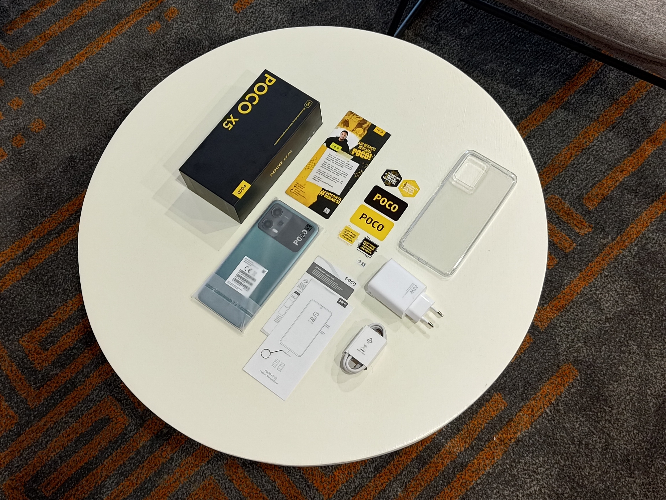 Dari segi kemasan POCO X5 5GÂ mengusung desain yang sama dengan seri X lainnya yang didominasi warna hitam kuning sebagai ciri khas dari POCO. Sedangkan di bagian belakang tertera tentang info nilai jual utama perangkat. Untuk paket penjualan, POCO X5 5G sudah dijual dengan aksesoris pendukung standar seperti kabel charger, kepala charge 33 Watt, casing, panduan penggunaan, serta SIM ejector.