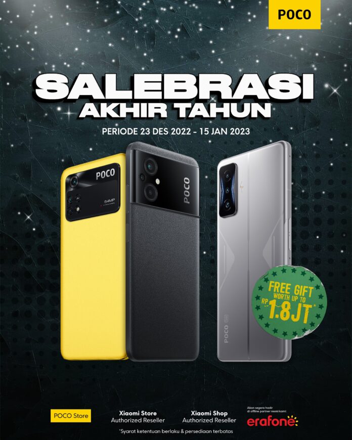 Sedangkan, bagi pengguna yang ingin mendapatkan smartphone POCO di toko ritel offline POCO Store, Xiaomi Store, Xiaomi Shop, Xiaomi Partner, dan Erafone, POCO hadirkan promo #SALEbrasi akhir tahun yang dimulai dari 23 Desember 2022 hingga 15 Januari 2023.