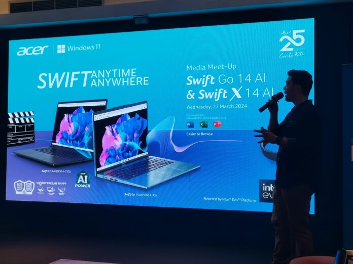 GadgetSquad.id – Acer Indonesia kembali merilis laptop Swift generasi terbaru yaitu Swift X 14 AI (SFX14-72G) dan Swift Go 14 AI (SFG14-73). Kedua laptop baru Acer ini ditenagai prosesor Intel® Core™ Ultra generasi terbaru yang telah mendukung Neural Processing Unit (NPU) dan kemampuan akselerasi berbagai fungsi Artificial Intelligence (AI).