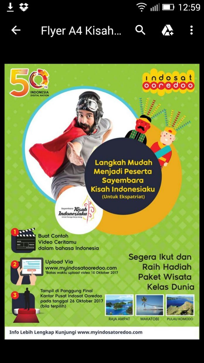 Sayembara ini menantang para peserta untuk menceritakan pengalaman unik mereka selama bermukim di Indonesia dan menunjukkan apa arti Indonesia bagi mereka. ”Indosat Ooredoo berharap program ini dapat menjadi wadah yang baik bagi para ekspatriat untuk berbagi pengalamannya dan merefleksikan ke-Indonesia-an melalui kacamata mereka, sekaligus menjadi sarana untuk mempromosikan keindahan, keberagaman dan toleransi yang ada di Indonesia,” ujar Ripy Mangkoesoebroto, Chief Human Resources Officer Indosat Ooredoo.