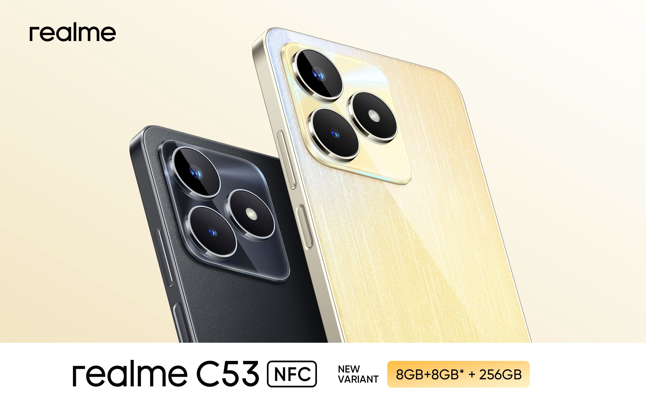 Daya tarik selanjutnya, realme C53 NFC kini ditawarkan dalam varian memori 8GB+8GB*|256GB, selain 6GB+6GB*|128GB. Itu artinya kamu akan lebih leluasa menyimpan berbagai data.