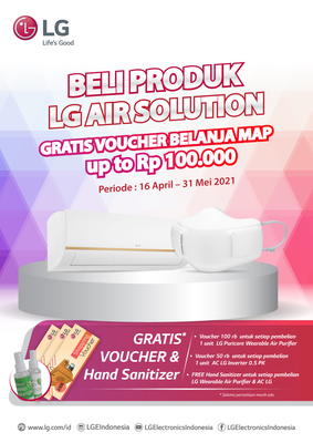 Promo ini berlaku untuk setiap pembelian semua produk LG Air Solution, mulai dari Air Conditioner atau AC serta LG Air Puricare atau LG Air Purifier.