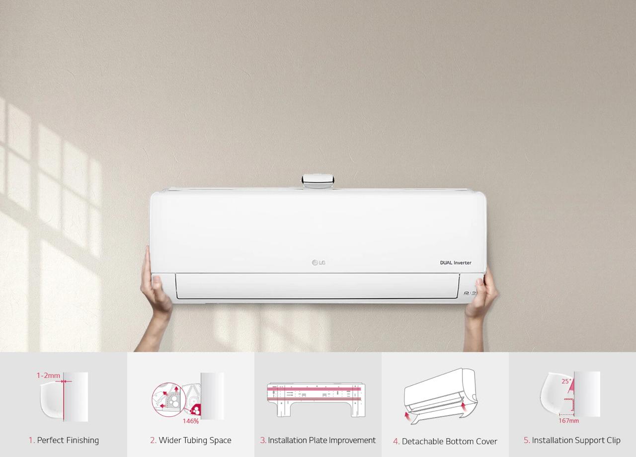 AC LG DUALCOOL with Watt Control memiliki desain yang mewah dan elegan. Selain itu dengan ukuran yang ramping membuat AC ini mudah dipasang ditempat yang di inginkan.