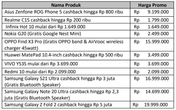 Berbagai penawaran istimewa ditawarkan melalui Erafone Fair 2021, di antaranya: