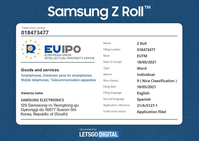 Sekarang, Samsung Electronics telah mengajukan merek dagang di Kantor Kekayaan Intelektual Uni Eropa (EUIPO) untuk nama Samsung Galaxy Z Roll, menurut LetsGoDigital. Seperti namanya, ini untuk smartphone pertama perusahaan yang dapat digulung.