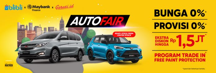 Blibli berkolaborasi dengan Maybank Finance, dan Garasi.id, menyelenggarakan program “Blibli x Maybank Finance x Garasi.id AutoFair”, berupa pameran otomotif virtual yang berlangsung mulai 21 Juni hingga 31 Juli 2021. Program AutoFair ini merupakan bentuk sinergi guna mendorong pertumbuhan industri otomotif untuk senantiasa melayani pasar di tengah tantangan pandemi COVID-19.