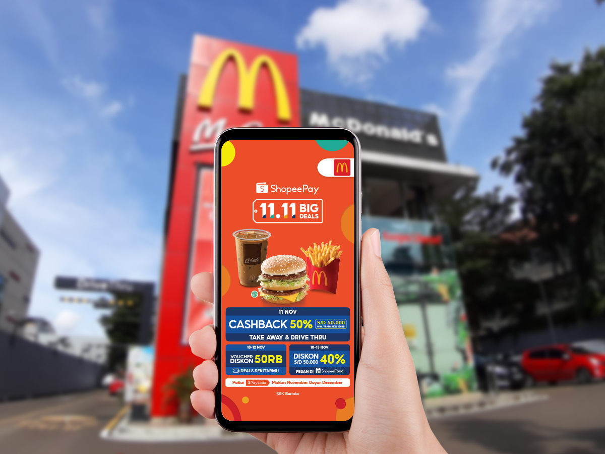 Jelang puncak kampanye ShopeePay 11.11 Big Deals, McDonald’s Indonesia dan ShopeePay mengumumkan kolaborasi eksklusif berupa rangkaian promo ShopeePay & ShopeeFood pada 10-13 November. Melalui kolaborasi ini, pelanggan McDonald’s dapat menikmati promo seperti Cashback 50% untuk pembelian drive thru dan take away, Voucher Diskon 50 Ribu, hingga Diskon ShopeeFood sebesar 40%.