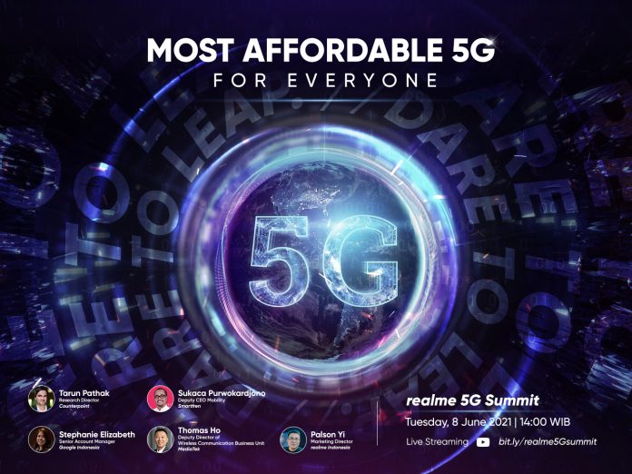 realme, hari ini dengan bangga mengumumkan akan menggelar realme 5G Summit yang pertama di Indonesia, pada 8 Juni 2021 mendatang secara virtual melalui kanal YouTube realme Indonesia pada pukul 14:00 WIB.