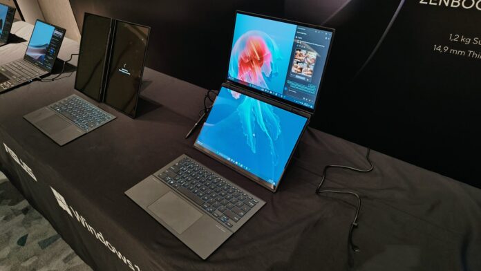 Desain layar ganda Zenbook DUO (UX8406) terdiri dari dua layar penuh berukuran 14-inci dengan teknologi ASUS Lumina OLED 3K Touchscreen with Stylus Support yang memberikan kualitas visual terbaik. Didesain untuk meningkatkan produktivitas, laptop ini dapat digunakan dalam lima skenario penggunaan yang berbeda, mencakup berbagai mode seperti Laptop, Dual Screen, Desktop, dan lainnya.