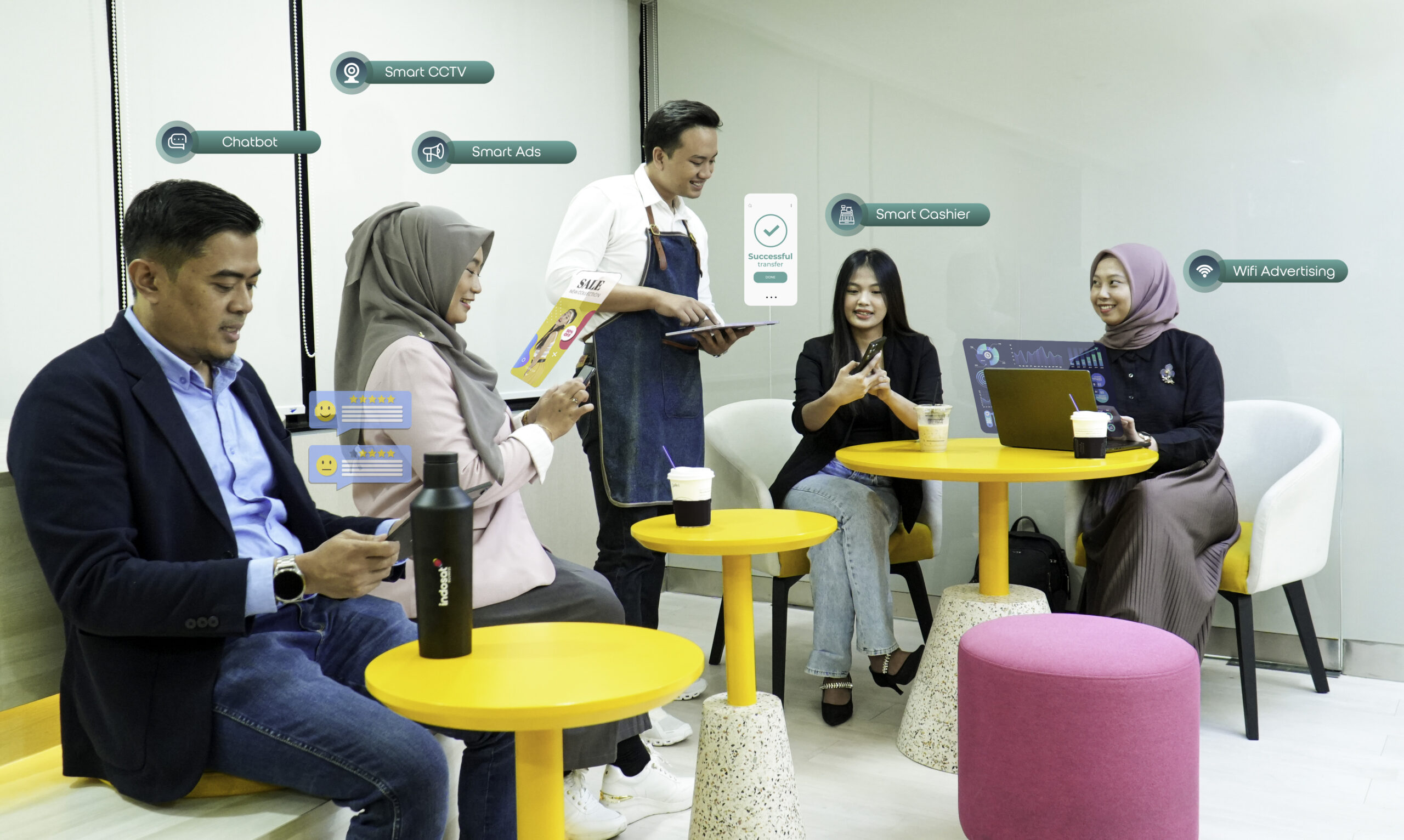 Ada juga, solusi Smart Cashier, yang merupakan sistem untuk mempercepat proses pembayaran, memastikan transaksi aman dan efisien.
