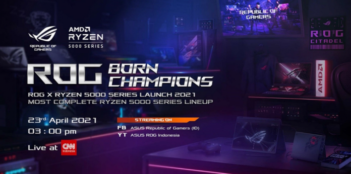 ASUS akan menggelar acara peluncuran untuk jajaran laptop gaming ROG terbaru pada hari Jumat, 23 April 2021. Dalam acara bertajuk “ROG Born Champions” tersebut, ASUS akan mempersembahkan lini laptop gaming ROG yang telah ditenagai oleh prosesor AMD Ryzen 5000 Mobile Series paling lengkap di Indonesia. ROG Born Champions akan disiarkan secara langsung melalui CNN Indonesia serta platform media sosial resmi ASUS ROG.