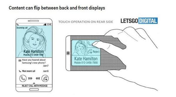 Dalam bocoran tersebut, diinfokan sejumlah ide Samsung untuk desain hape masa depan, yang dilengkapi layar pada sisi depan dan belakang handset.