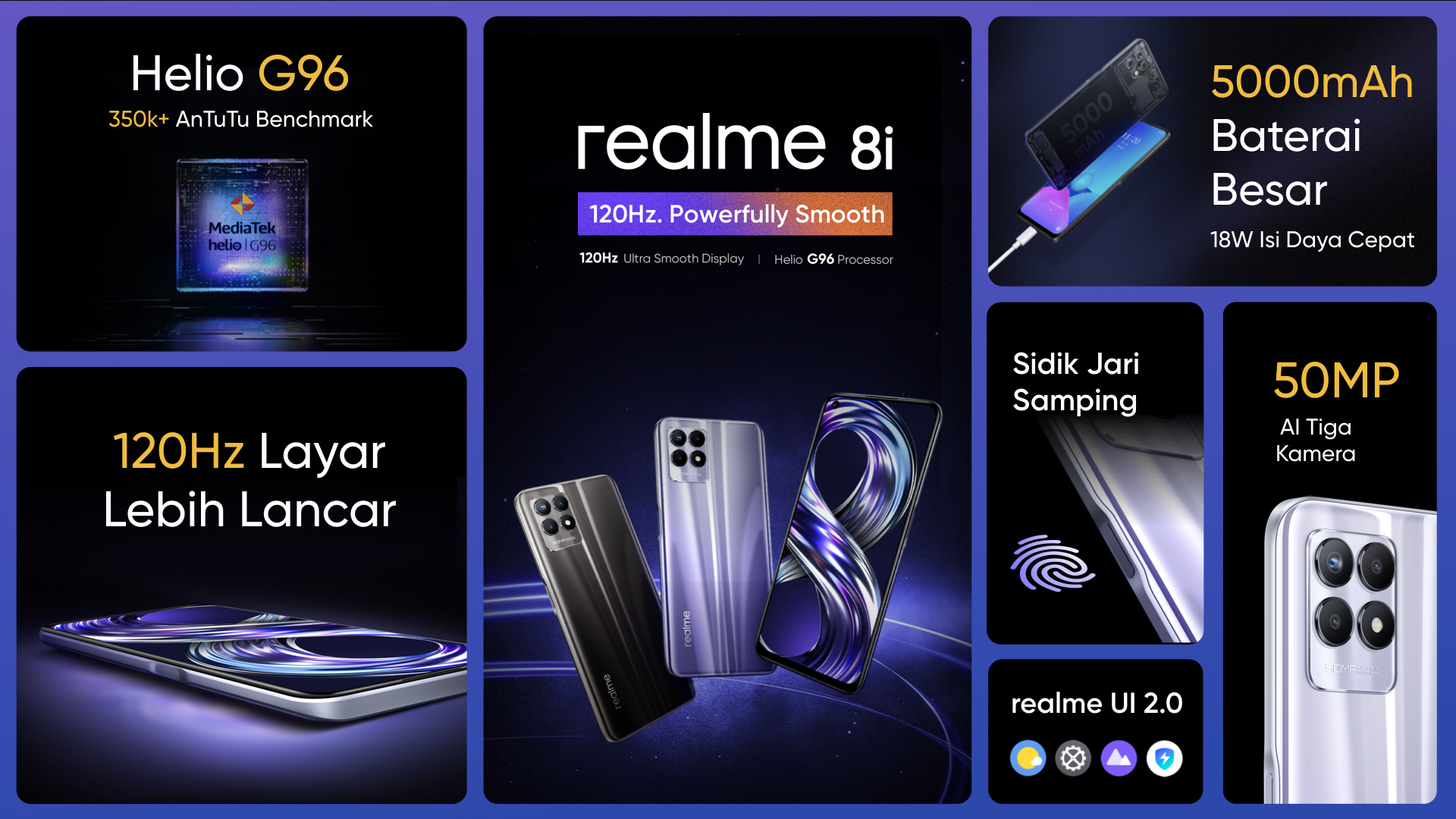 “Sebagai tech trendsetter brand, kami ingin mempopulerkan refresh rate yang tinggi dengan harga terjangkau sehingga banyak anak muda dapat merasakan teknologi trendsetting yang sesuai dengan kantong mereka. Itu sebabnya kami meluncurkan realme 8i dengan refresh rate 120Hz di bawah Rp 3 juta. Besok, kaum muda dapat membeli realme 8i kami yang paling terjangkau namun tetap powerful di semua kanal penjualan.”