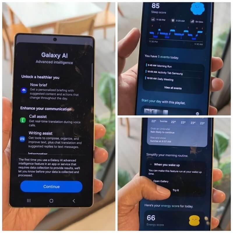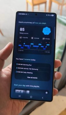 Biar lebih pasti, kamu bisa pantau kondisi tubuh dalam bentuk Energy Score yang ditampilkan di Now Brief. Ini karena Now Brief terhubung dengan fitur Samsung Health yang bisa dikoneksikan dengan perangkat Galaxy Watch atau Galaxy Ring. Di mana perangkat wearables ini dan Samsung Health akan selau memantau kondisi tubuh, termasuk Sleep Tracking semalam dan malam-malam sebelumnya. Tidak itu, juga bisa memantau kondisi aktivitas tubuh selama seharian beraktivitas melalui Activity Tracking.