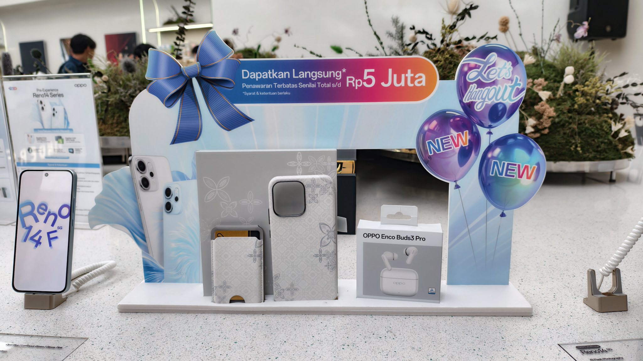 Selama penjualan perdana, konsumen bisa memperoleh total keuntungan hingga Rp3 juta, termasuk langganan Google AI Pro 3 bulan, 2TB Cloud Storage untuk pembelian Reno14 Pro 5G & Reno14 5G, serta cicilan 0% dan cashback hingga Rp750.000 dari bank partner. Selain itu, tersedia penawaran khusus dari operator dan voucher eksklusif dari partner yang dapat digunakan di aplikasi My OPPO.