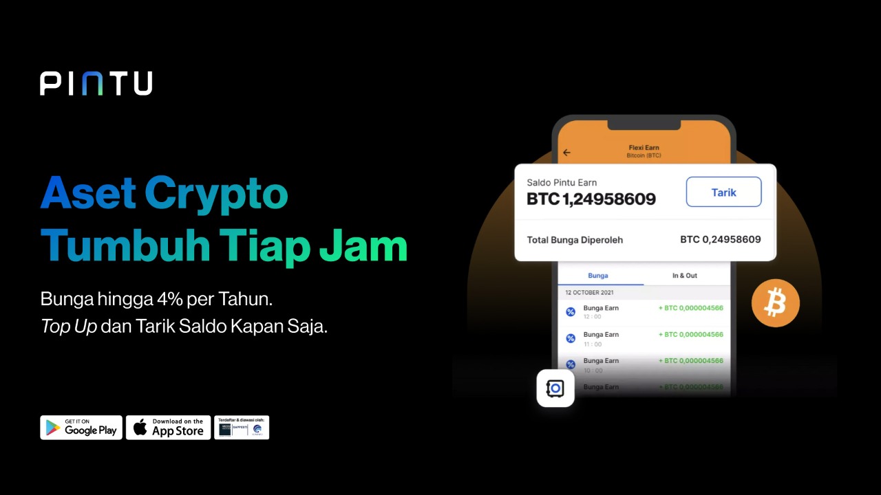 Fitur Earn merupakan inovasi terbaru dari PINTU yang menawarkan imbalan untuk aset crypto tiap jam dan fleksibel, di mana pengguna tidak perlu mengunci aset crypto dalam jangka waktu yang ditentukan.