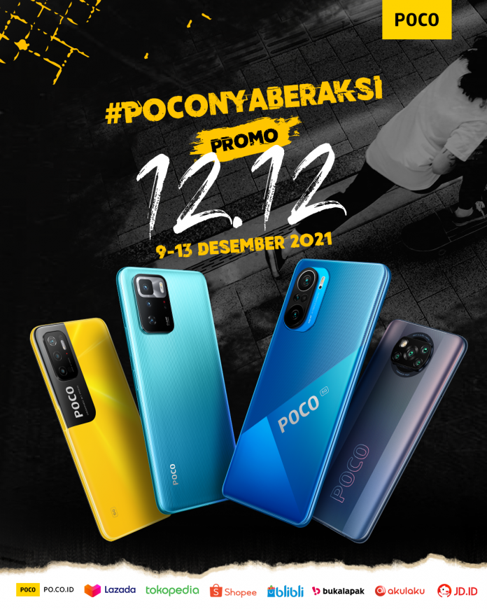 POCO kembali menggelar #POCOnyaPromo 12.12 yang akan berlangsung selama periode 9-13 Desember di po.co.id, official store Xiaomi Indonesia di platform e-commerce Akulaku, Blibli, Bukalapak, JD.id, Lazada, Shopee, dan Tokopedia. Penawaran harga khusus beragam produk POCO, ditambah dengan kolaborasi bersama mitra-mitra komunitas populer bagi anak muda, merupakan kelanjutan dari rangkaian kampanye #POCOnyaBeraksi untuk mendukung aksi para POCO Fans di seluruh Indonesia.