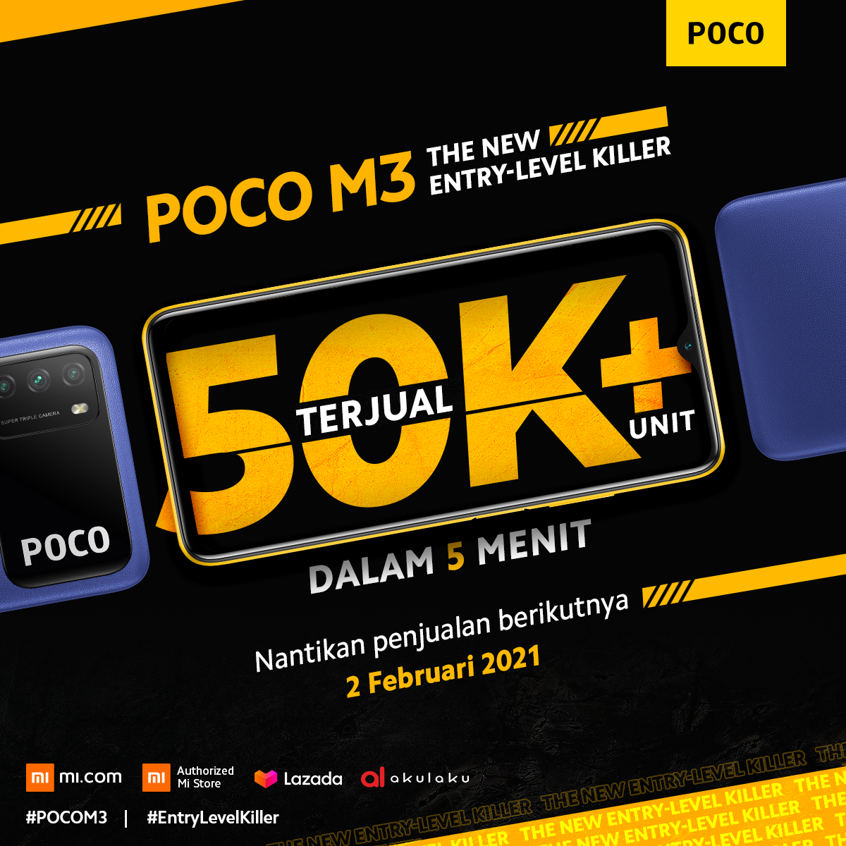 POCO Indonesia menjual habis lebih dari 50.000 unit smartphone POCO M3 hanya dalam waktu lima menit pada penjualan perdana tanggal 26 Januari 2021. Terus berupaya untuk menghadirkan inovasi bagi semua orang, penjualan perdana POCO M3 dilakukan dengan perbaikan secara terus menerus untuk menjamin pengalaman terbaik dari calon pembeli.