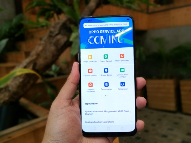 Selain meluncurkan layanan, OPPO juga memperkenalkan aplikasi baru OPPO Service. Aplikasi ini dibuat untuk mempermudah pengguna dalam mencari informasi mengenai service Hp, seperti lokasi service center, status garansi, status perbaikan, hingga harga suku cadang.
