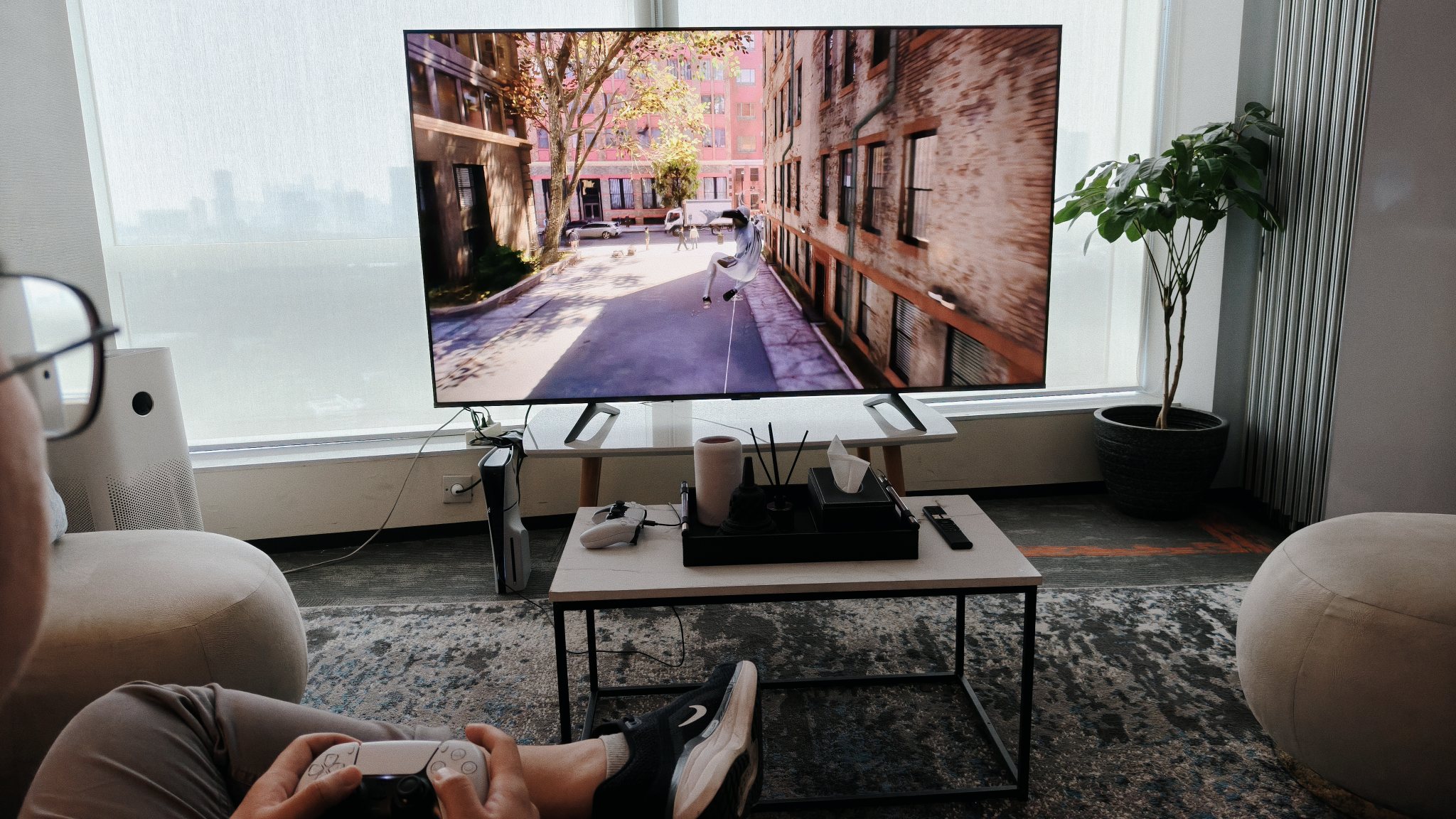 TV ini dibekali panel 4K QLED (Quantum Dot LED) yang sanggup memproduksi spektrum warna yang lebih mendalam, presisi, dan realistis. Dengan adanya dukungan standar HDR10+ makin mempertajam perbedaan antara area terang dan gelap serta memperjelas detail visual. Khusus bagi para penggemar sinema, ada fitur Filmmaker Mode yang menjamin pengalaman menonton yang setia artistik para pembuat film.