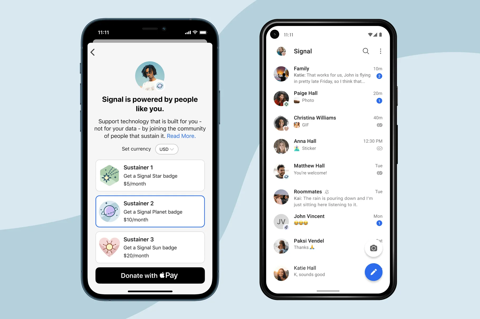 Pengguna dapat memilih untuk memberikan donasi bulanan, atau kontribusi satu kali dalam aplikasi menggunakan Apple Pay atau Google Pay. Dan informasi pembayaran mereka tidak akan dikaitkan dengan akun Signal pengguna, karena perusahaan akan menggunakan skema kredensial anonim yang sama yang digunakannya untuk grup Signal pribadi.