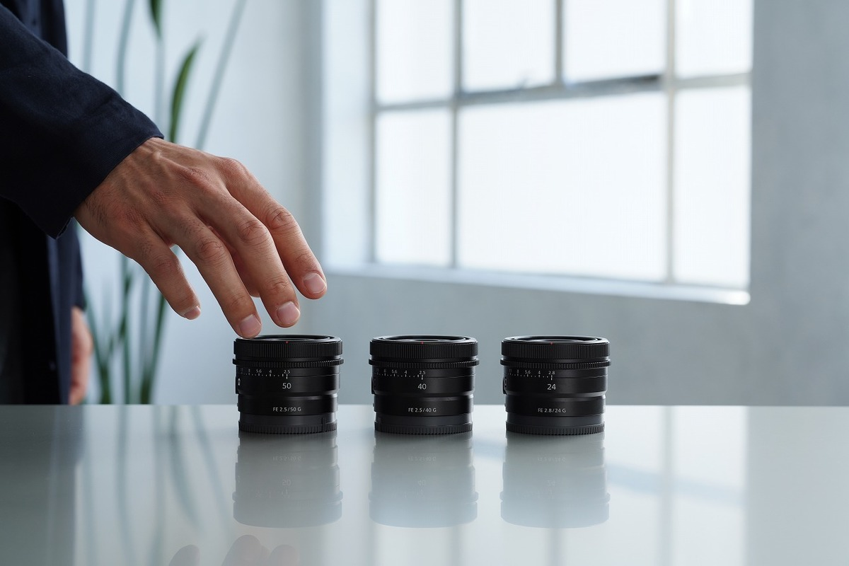 Selain itu, pertukaran lensa dapat dilakukan dengan mudah, bahkan pada saat menggunakan gimbal, karena ketiga lensa ini memiliki ukuran yang sama (diameter 68mm x 45mm), diameter filter yang sama (49mm) dan berat yang hampir sama (FE 50mm F2.5 G 174g, FE 40mm F2.5 G 173g dan FE 24mm F2.8 G 162g), serta fokus internal. Ketiga lensa ini memiliki desain eksterior yang sama, namun focal length pada lensa ini ditandai dengan jelas untuk pergantian yang cepat. FE 50mm F2.5 G terbaik untuk portrait teman / keluarga dalam kehidupan sehari-hari, FE 40mm F2.5 G cocok untuk snap foto dan video (foto sehari-hari / pembuatan film menggunakan gimbal), FE 24mm F2.8 G cocok untuk pemandangan, travel, dan perekaman video dengan latar belakang yang luas, seperti vlogging.