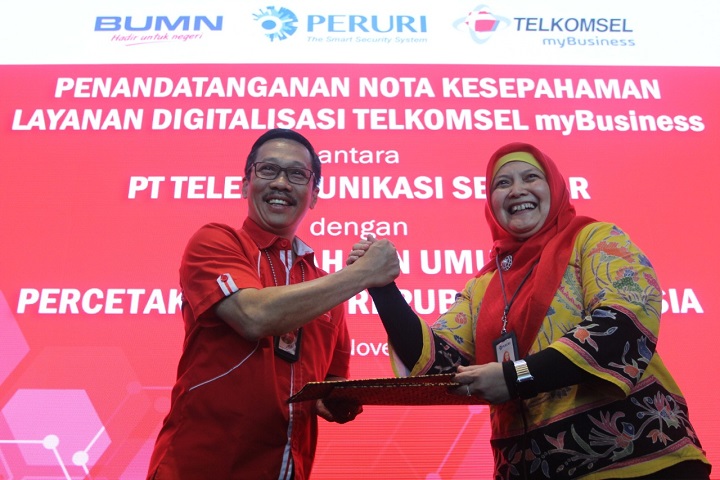 “Hari ini kita bergembira Peruri yang telah mempercayakan layanan Telkomsel MyBusiness dan Telkomsel IoT sebagai solusi untuk membantu program digitalisasi perusahaan serta pengembangan bisnis Digital Security mereka. Kami harap solusi yang kami berikan dapat mendukung misi Peruri dalam menghasilkan produk yang semakin berkualitas dan bernilai sekuriti tinggi kebanggaan bangsa sekaligus memperkuat posisi perusahaan di bidang usaha integrated security printing and system,” ungkap Primadi.