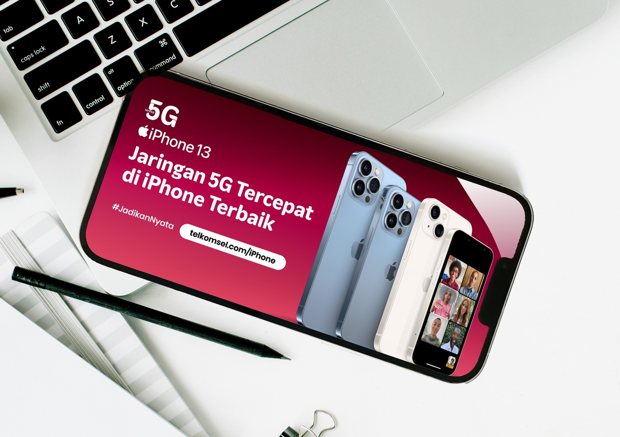 Pelanggan Telkomsel Halo dan Telkomsel PraBayar yang menggunakan seluruh seri iPhone 13 dapat segera mengaktifkan secara mandiri bonus kuota 5G hingga sebesar 50 GB dengan mengakses banner ‘5G Self-Provisioning’ pada aplikasi MyTelkomsel.