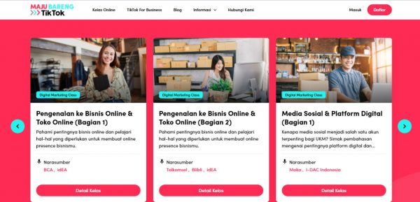 TikTok, platform destinasi video singkat terdepan, telah merampungkan rangkaian kelas online #MajuBarengTikTok yang berlangsung sepanjang bulan Juni dan berhasil menjangkau lebih dari 12.000 pelaku usaha kecil dan menengah (UKM) di seluruh Indonesia. Sebagai kelanjutan dari program pemberdayaan UKM ini, TikTok memberikan kesempatan kepada pelaku bisnis lainnya untuk mengakses semua materi dengan mengunjungi dan mendaftarkan diri di situs MajuBarengTikTok.com. Inisiatif ini merupakan bagian dari komitmen TikTok untuk mendukung para pelaku UKM agar bisa maju bersama di era digital, dengan mengoptimalkan platform digital berbasis kreativitas, seperti TikTok.