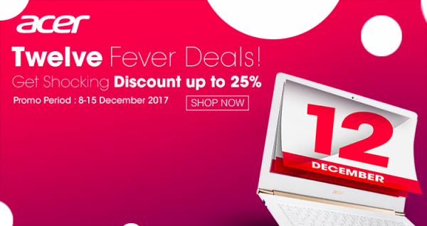 Tak ingin ketinggalan, Acer Indonesia juga memberikan kabar gembira bagi para pelanggannya dengan menghadirkan diskon dan cashback menarik. Pada Harbolnas yang digelar pada tanggal 8-15 Desember 2017, melalui Acer eStore dan partner eCommerce resmi, Acer memberikan potongan harga dan cashback sampai dengan 25%.