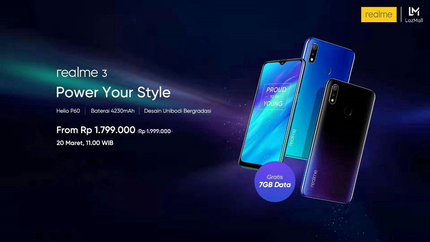 - Untuk semua pembeli yang melakukan pembelian realme 3 pada tanggal 20 Maret, akan mendapatkan lebih banyak kejutan seperti paket data sebesar 7GB gratis dari Indosat Ooredo, voucher Aukey senilai Rp 150.000 dan tiket pergi-pulang ke Bali untuk 10 pembeli beruntung yang melakukan pembelian pada 20 Maret dan 27 Maret. Pemenang tiket pergi-pulang ke Bali akan diumumkan pada 3 April.