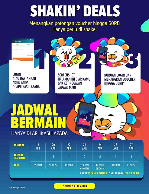 Konsumen dapat turut merayakan keseruan ulang tahun ini menggunakan fitur baru di aplikasi Lazada, yaitu Shakin’ Deals. Cukup menggoyangkan ponsel di jam tertentu sesuai notifikasi di aplikasi ini, setiap hari para penggila diskon dapat berburu puluhan ribu voucher digunakan pada periode ulang tahun ini.