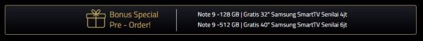 - Untuk setiap pembelian Samsung Galaxy Note 9 128 GB akan mendapatkan gratis 32″ Samsung SmartTV (32N4300), sementara untuk pembelian Samsung Galaxy Note 9 512 GB akan mendapatkan 40″ Samsung SmartTV (40J5250).