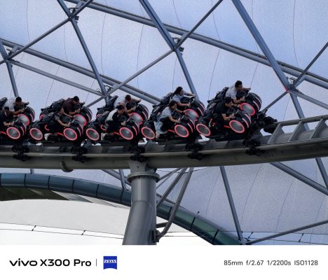 Shutter response yang ekstra cepat terbukti menjadi solusi untuk menangkap momen ekstrem pada wahana roller coaster, di mana biasanya smartphone lain kesulitan menjaga fokus saat objek berpindah posisi terlalu cepat. Mode snapshot juga bekerja dengan burst frame, beberapa gambar diambil sesaat secara simultan, sehingga memungkinkan pemilihan momen aksi terbaik, mulai dari rider pertama menunduk hingga sensasi mencapai kecepatan puncak dan ekspresi antusias para pengunjung. Disinilah mode snapshot milik X300 Pro menunjukkan keunggulannya dengan sangat baik.