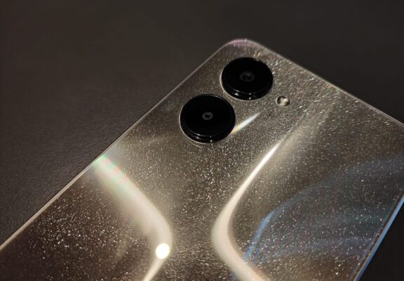 realme C33 generasi terbaru yang kali ini GadgetSquad uji, hadir dalam pilihan warna emas “Sandy Gold”. Sedikit info tambahan, versi sebelumnya realme C33 hadir dalam pilihan warna Aqua Blue dan Night Sea. Kembali ke versi Sandy Gold, bodi belakangnya dilapisi tekstur komposit pasir yang berkilauan dan lapisan cerah, sehingga memberikan efek ‘aliran air’ yang lebih jernih dan transparan.