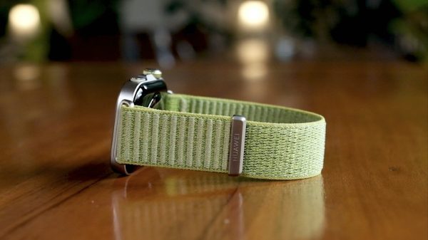 Huawei Watch 4 Fit Pro hadir dengan tampilan yang mengesankan berkat perpaduan bodi aluminium kelas aerospace yang ringan namun kokoh. Pada bagian bezel berbahan titanium alloy yang menambah kesan premium sekaligus durabilitas tinggi. Untuk unit yang kami uji varian warna hijau, Huawei membekalinya dengan strap berbahan nylon yang ringan, fleksibel.