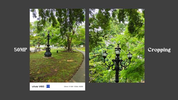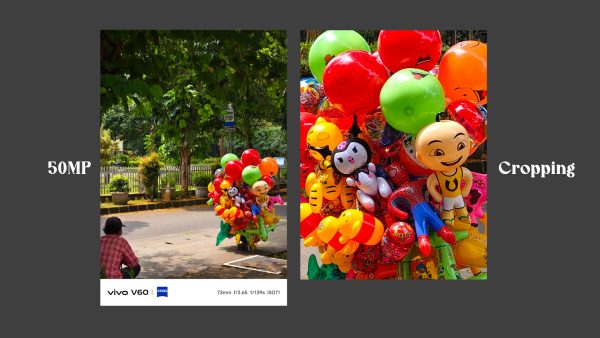 Resolusi besar 50 MP juga memberikan fleksibilitas bagi pengguna yang gemar melakukan cropping, karena detail gambar tetap terjaga tanpa mengalami penurunan kualitas. Dengan dukungan teknologi optik dari ZEISS, vivo V60 menawarkan pengalaman fotografi yang solid dan kompetitif di kelasnya.