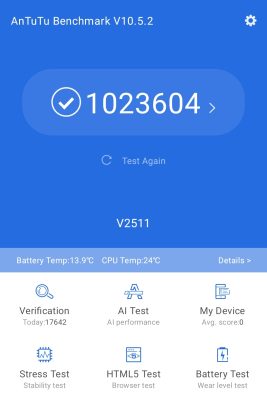 Bahkan, hasil uji coba menggunakan AnTuTu Benchmark versi 10.5.2 mencatat skor lebih dari 1 juta poin, sebuah capaian impresif untuk smartphone di segmen kelas menengah premium.
