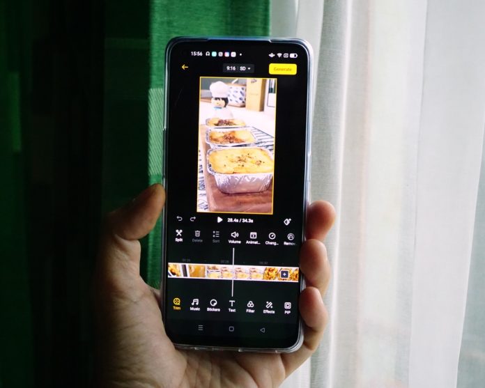 Pilh tombol Generate yang ada di pojok kanan atas layar dan tunggu hingga olahan video Anda diekspor ke album hape.