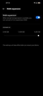 3. Setelah memilih besaran yang mau ditambah, restart ponsel kamu. Ketika kamu masuk ke About Phone, pada info RAM terdapat indikator 6.00 GB (+5.00 GB).