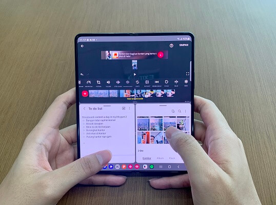 4. Proses edit konten di Galaxy Z Fold4 5G pun tak kalah profesional. Dalam hal ini, kamu bisa memaksimalkan Multi Window untuk buka aplikasi photo & video editing, notes, dan gallery sekaligus, jadi kamu bisa edit foto dan video berdasarkan storyline yang telah dibuat sambil melihat semua stok foto dan video yang telah diambil. Pengalaman mengedit konten pun jadi lebih seamless dan efisien.