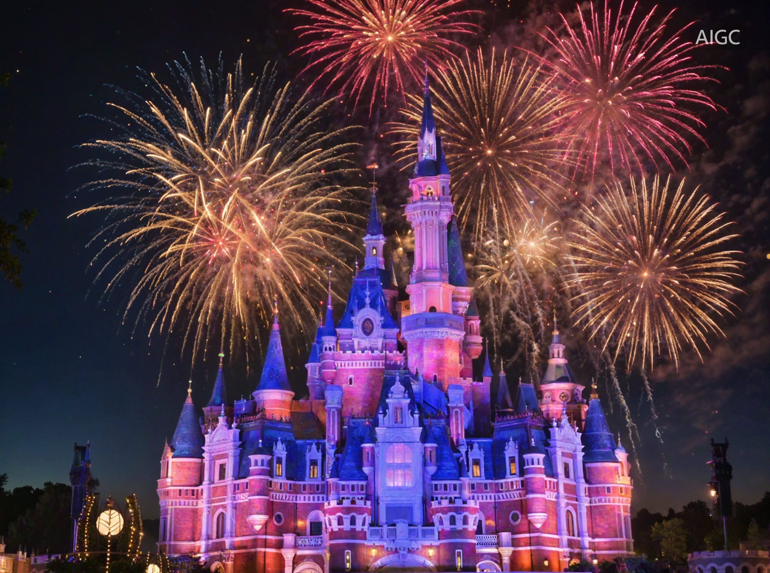 Reproduksi warna yang dihasilkan sangat kaya dan akurat, terlihat dari kontras warna ungu kemerahan pada kastil yang berpadu cantik dengan gradasi keemasan serta percikan api di langit malam. Meskipun proses pengambilan gambar ini mendapatkan dukungan penuh dari algoritma AI Visual yang canggih, hasil akhirnya tetap terlihat sangat realistis dan organik.