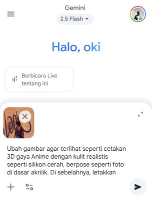 Google Gemini AI versi 2.5 Flash Image adalah sebuah generator AI yang mampu merender gambar 3D hiper-realistis dari input foto dan instruksi teks (prompt). Fitur unggulannya mencakup kemampuan mempertahankan konsistensi karakter dalam berbagai adegan, rendering teks yang jelas, dan kemampuan editing interaktif tanpa harus mulai ulang gambar dari nol. Sistem ini memungkinkan pengguna untuk mengkreasikan action figure virtual dengan detail yang memukau hanya dengan mengunggah foto dan memberikan deskripsi yang rinci.